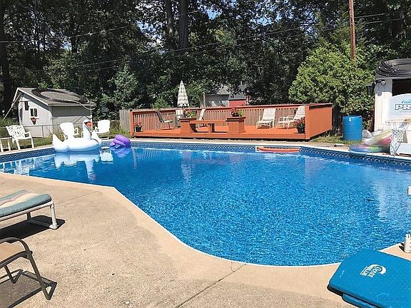 Just in time for Summer! This is the backyard you want to own! You'll love the inground 20x40 pool w/ amazing new deck & patio area for entertaining! The house features two updated FULL baths, newer carpet, new bedroom flooring & an open kitchen into a rec/sun room. Roof & windows approx. 10 yrs. Central air 2 yrs. The large master bedroom has double closets and built-ins. A must see inside & out!