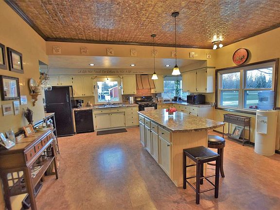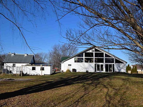 Unique farmhouse w/ many updates on 3 acres and just minutes from Green Bay. Spacious kitchen with charming tin ceiling, large island and loads of cabinets. Dining room area with beautiful hardwood, 24x50 bonus room w/ wood burning fireplace & huge windows, previously an INDOOR pool that has been filled and covered. Loft area in which the possibilities are endless, 2nd kitchen area and another full bath. Bring that pool back or have a stunning great room! Heated garage w/ epoxy floors and drains, additional garage and chicken/dog coop. Nice basement w/ Sure Dry system, huge yard is stunning!
