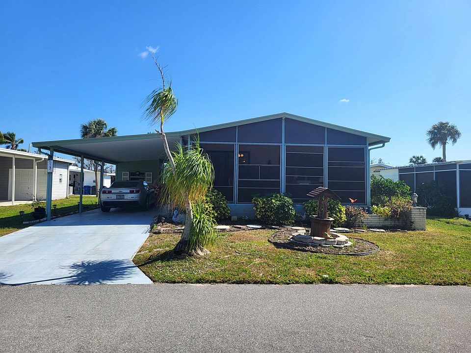 UNBELIEVABLE PRICE ON THIS 2/2 TURN KEY HOME WITH INDOOR LAUNDRY! Sunlight flows freely in this semi-open concept home tastefully furnished and turn key complete to include your basic kitchenware/supplies, small appliances, decor and linens. Literally pack your bags and move right in! The fully equipped kitchen has a breakfast nook with storage and has been updated with more modern cabinets and there are newer hardwood and laminate floorings through main living areas. and newer ceiling fans/light fixtures. Bonus features such as cathedral ceiling, updated lighting and fans, indoor laundry room, built-in office area and a spacious front-facing tiled lanai. There are generous sized bedrooms with large walk-in closets and spacious bathrooms with linen closets. Owner has vapor barrier, tie-down and HVAC update receipts. Super long driveway will easily accommodate 2 cars and a golf cart or any other toys you may have. With the laundry room being located inside the home the utility shed is perfect for any additional storage needs you may have. Camelot Lakes is a beautiful, gated, resort-style 55+ community where your monthly lot rent of $1487 includes water, sewer, trash/recycling curbside pickup, lawn maintenance, taxes and endless upscale amenities and organized activities. There are 2 beautiful lakes with fountains and paired swans and we're told, some king size bass! All shopping needs, great restaurants, hospital and entertainment are just minutes away via quiet back roads or easy I-75 access. Tired of having everything at your fingertips? Take a 7 mile drive to the beautiful white sand beaches of Siesta Key. Throw out a line, take a dip or enjoy an energizing walk along the shore. A never ending supply of fresh air, sunshine and some of the nicest people you'll ever meet. Luxury living at the lowest cost in Sarasota! Exclusive and shown by appointment only.