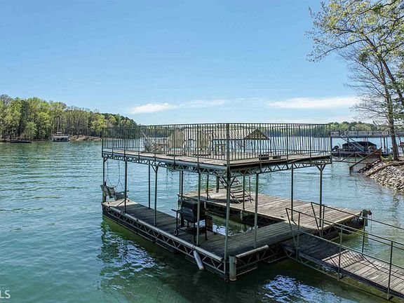 Sprawling, resort-quality lakefront estate in prestigious, Forsyth Co. swim/tennis nâhood. Gorgeous Lake Lanier sunset views, private yard & gentle path to party dock (permitted 32x32) in drought-proof cove. Open floor plans on main & terrace, lux finishes & fixtures, high ceilings & abundant windows to showcase Lanier. Gourmet kitchen w/ imported Italian tile, inlaid wood ceiling, huge work island, European-infused custom cabinetry, bfast nook & million-$ vistas. Gracious master suite w/ library sitting room attached, DREAM closet & large bonus room (currently office/workout space). Sunny reading room off living space could make a main level master suite. Fabulous terrace lvl, great for parties, centered around stunning mahogany bar, inviting stone fp, billiards area, 2 en-suite BRs (could be addtlâ master), another massive deck - all w/ breathtaking scenery. Excellent south lake location, minutes by car or boat to Bald Ridge & Port Royale marinas.