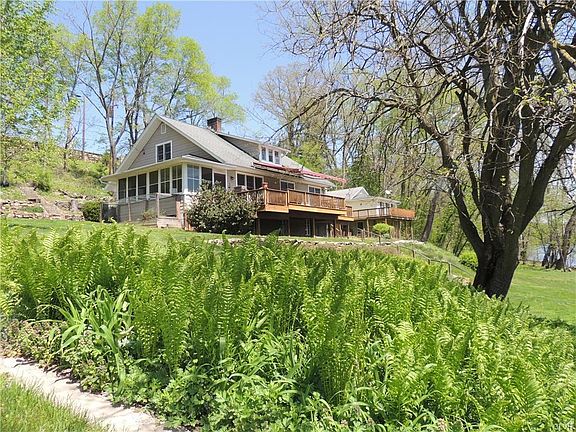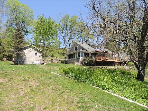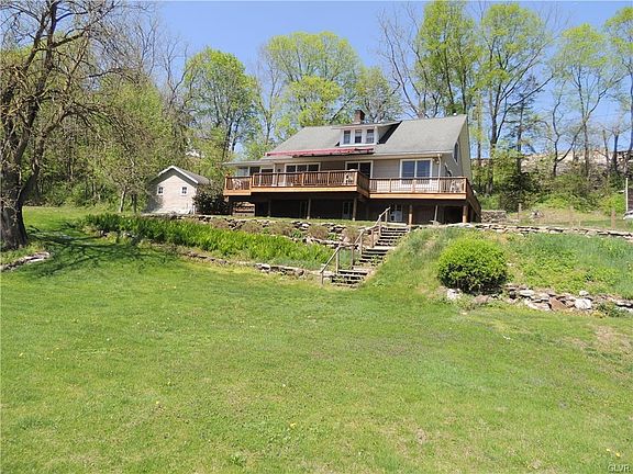 Every day is like a vacation day when you live here. 1.3 acres on the Delaware River in Lower Mt. Bethel Township. 4 bedrooms, 2 full baths, eat in kitchen, laundry room on first floor, large deck with awning overlooking the River. Screened in porch. Two car detached garage. Plus one car garage on Depues Road, above and set back from the property. Generator outlet.
