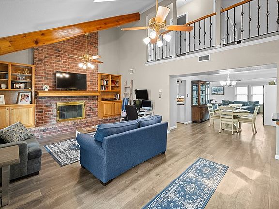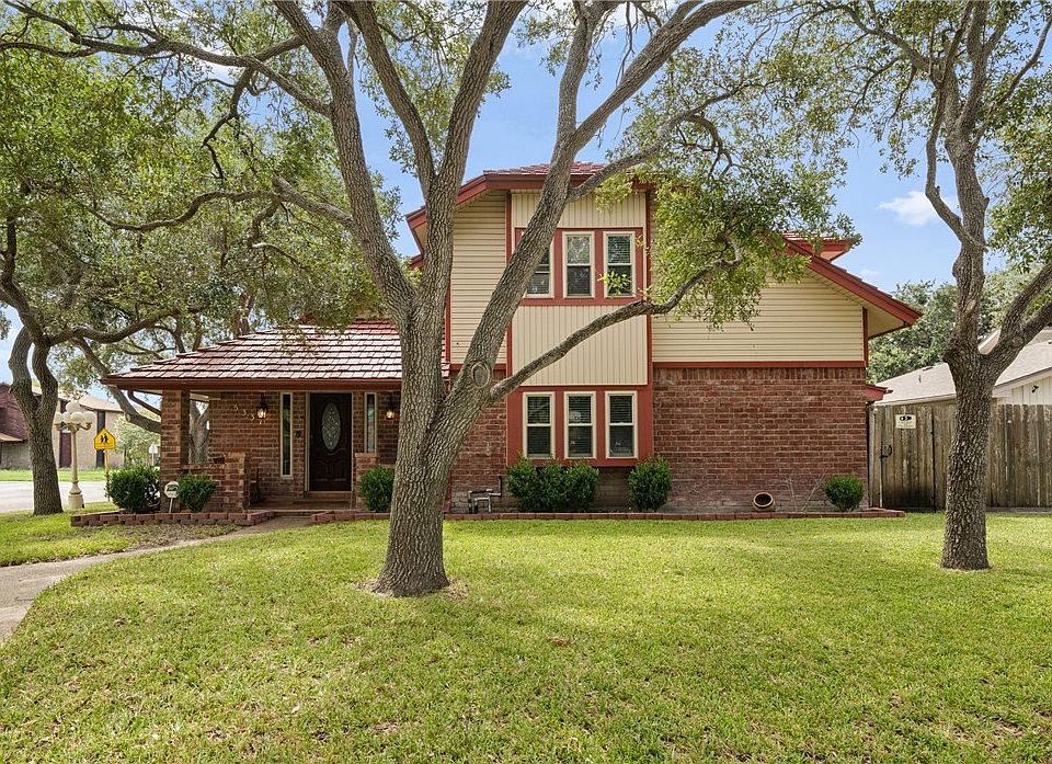 Come discover 5337 Inverness Dr., a home on a huge corner lot that blends modern elegance with everyday comfort in the heart of Corpus Christi! This 4-bedroom, 2.5-bath gem is packed with thoughtful spaces, including two living areas, two dining spaces, and a chef-ready kitchen that will inspire your culinary creativity. Cathedral ceilings with exposed wood beams, a cozy fireplace, and a stunning open staircase set the tone for stylish, inviting living. The huge kitchen flows effortlessly to a second living area and opens to a large patio with a gazebo, wonderful for gatherings or peaceful evenings overlooking a sprawling backyard. Function meets convenience with an oversized garage, RV hookups, a separate storage building, and a durable metal roof built to last. Retreat to the downstairs primary suite with a spacious walk-in closet and spa-like bathroom, while three additional bedrooms upstairs provide room for everyone. Recent updates, including a newer upstairs HVAC system, osmosis water system, and tankless water heater with softener accessibility, make this home move-in ready. The neighborhood is getting an exciting refresh too—brand-new sidewalks have been installed, and a fresh road surface is on the way, enhancing both curb appeal and convenience. Don’t wait—experience this vibrant, ready-for-you home today!