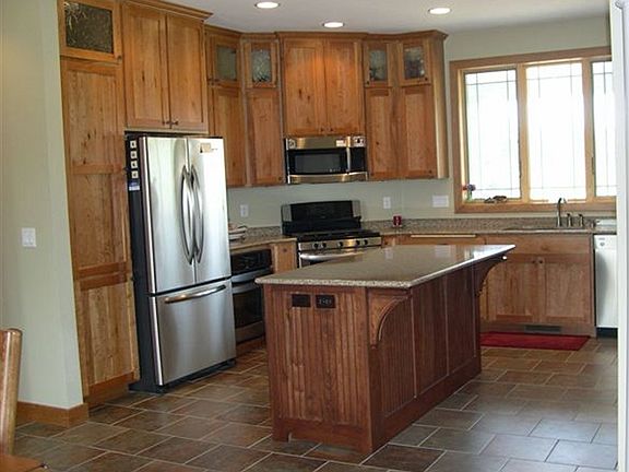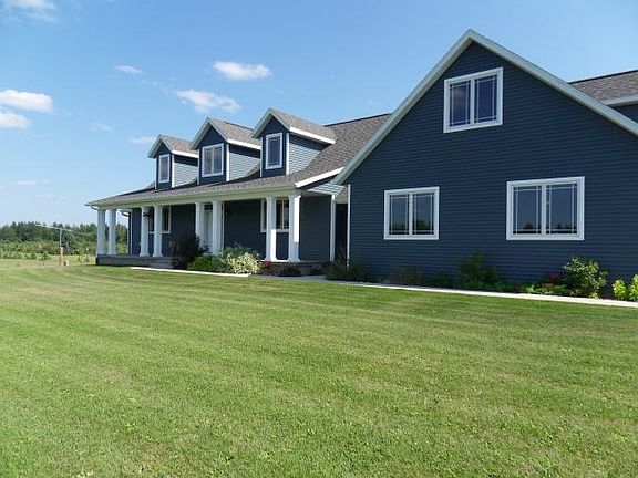 Exceptional country home on over 38 acres close to town. This home was built in 2007 and boasts quality throughout. The kitchen has custom cherry cabinets, granite counters, large island, heated porcelain floors, stainless appliances, and a large pantry. There is a sun room off the dining area for reading and relaxation, spacious living room with stone fireplace, main floor laundry, 6 panel cherry doors, cherry trim, lower level walkout with family room, bonus room and more.