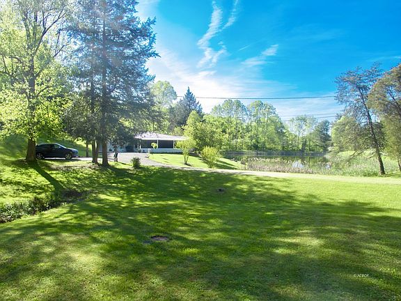 Extensively renovated Ranch on 5+ acres and a Pond. Finally a place that has it all! This gorgeous renovated ranch on 5.122 acres with a large, stocked pond in a serene setting is what small town dreams are made of. You can sit on the covered, screened in patio and drink your morning coffee with amazing views from every angle and watch the wildlife, then wander out the door to cast your rod into the pond and catch a large bass. There is plenty of room for all your toys and tools in the 30x40 pole barn. Once inside you will find that the house has been updated (all in 2022) with new electrical, plumbing, drywall, lighting, new HVAC, all new flooring, new appliances and the list goes on and on. There is currently one bathroom, but the Master Bath is prepped and ready to be finished; plumbing is ran, and supplies are on site, including a deep, jetted bathtub and it is ready to make it your own! This place is a MUST see, and will not last long, schedule your showing today!