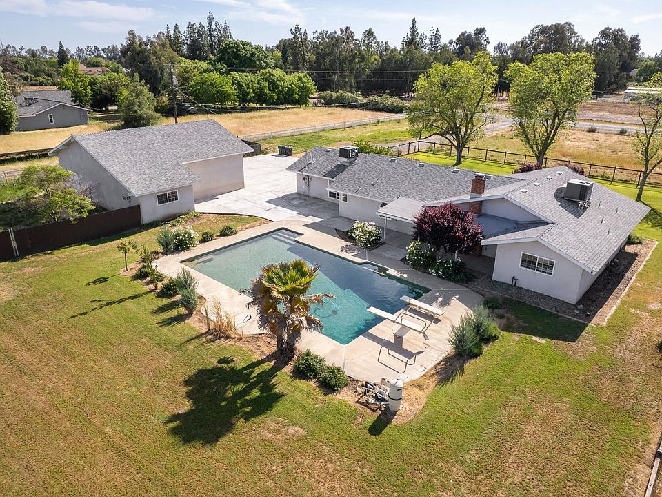TRUE Clovis country living is found right HERE on this gorgeous and peaceful, nearly 5 acre parcel with mountain views. While still convenient to schools and shopping, coming home to this property means escaping the noise, traffic and crowds of the city to enjoy quiet evenings and having room to use your land as you dream. The 4 bed/4 bath home has been beautifully updated, most notably in the kitchen and enormous owner's suite. Engineered hardwood floors run throughout the home, complementing the freshly painted walls. The junior suite on the opposite end from the owner's suite offers options for multi-gen living. Much attention has been given to energy efficiency as demonstrated in the 20 kw/60 panel solar system (no true-up), a newer tankless water heater, vinyl dual pane windows, and two 14-seer AC units (installed 2 years ago). Outdoor living is a key feature of this home, with large grassy areas and a swimming pool big enough for the entire neighborhood, so get ready for your summer parties! A separate fenced area with Tuff Shed makes a perfect dog run or garden area. Huge pasture space is ready for your animals, ADU or other plans. The ~1600 sq. ft. shop/garage has two 10' tall double garage doors and a pass-through door at the rear. It's big enough for several cars, your trailer, boat and toys! An attached office is a great work space and stays cool with a wall AC unit. Endless opportunities await. Call for your showing today!