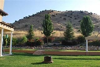 A chic Mediterranean style house that is full of light and space and complete privacy. Harris Ranch in east Boise a beautiful custom single level home that backs to the foothills. The house sits on an oversized lot with hardwood floors and high ceilings. The living space and the kitchen are connected and flow to the dining room. Large master with fireplace with a walk out to the back yard. 3 additional bedrooms and an office. 3 car garage, custom driveway on a culdesac.