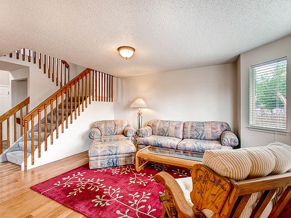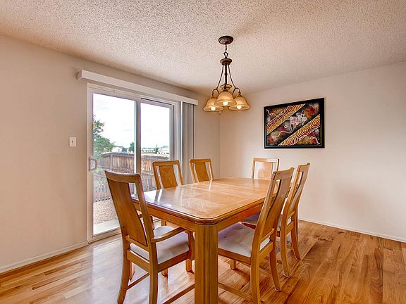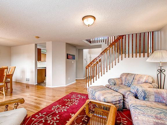 This beautiful, meticulously maintained home is warm and welcoming accented by a natural wood banister and cabinets and real hardwood floors. This popular floor plan has 4 bedrooms upstairs, bridge/loft separates the master bedroom. Upstairs Bedrooms have Mountain views. Central air, security system, zeroscaped backyard easy on the water bill. Park and playground across the street. Backs up to open space. Fenced backyard. Quick drive to Denver or DIA.