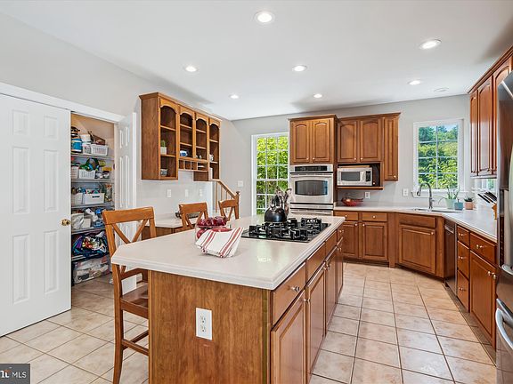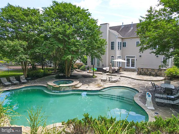 Stunning 4-bedroom 4.5 bath w/pool in Grovemont neighborhood! This home sits on a fabulous 0.44-acre lot w/extensive stone hardscaping/outdoor grill/bar/and large pool w/waterfall/hot tub. It backs to the green space of the Trinity School. Absolutely an entertainer’s dream come true! You’re greeted by a sprawling two- story foyer. The main floor flows seamlessly w/beautiful refinished (2024) hardwood floors throughout. The open kitchen offers Corian countertops, maple cabinetry, a large island with a five-burner gas cooktop, double oven, and walk-in pantry. Spacious, open family room has a gas fireplace and lots of windows for natural light and pool views. Between the kitchen and large dining room is small bar area for entertainment purposes which leads to a large dining room w/chair railing and crown molding. The main floor has a private office, as well as separate dining and living rooms plus a ½ bath. Dual staircases lead to the open upper-level of the home with four bedrooms. The primary suite has double doors, which open to a large bedroom space w/vaulted ceiling. There are two walk-in closets as well as an extra sitting/multipurpose room. The ensuite bathroom has two separate sinks and a large soaking tub. Two other bedrooms on the upper level share an updated Jack-and-Jill bathroom w/tub/shower and a double vanity. All 4 bedrooms are generously sized and two bedrooms have views of the backyard/pool. The 3rd full bath on the second floor has a tub/shower w/double vanity. Convenient second floor laundry w/updated front loading washer and a dryer, as well as a storage closet. The walk-up basement has full bathroom w/tiled shower. There is also an additional flex room (potential second home-office/craft room), multiple storage spaces, plus a fabulous large entertainment area w/movie theater seating, pool table and built in bar. Paths to Rockburn Park and Patapsco State Park are quick walking distance. Close proximity to I-95, Rt 100 and Rt29, and BWI airport make this super convenient for commuters.
