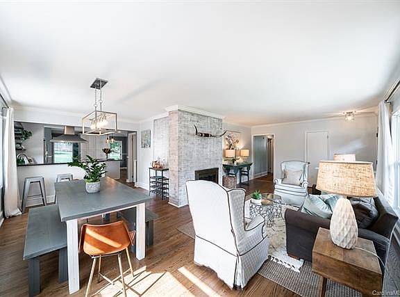 Fantastic brick ranch in the heart of Madison Park. Open floor plan with hardwood floors throughout. Huge renovated kitchen with open shelving, kitchen island and stainless appliances. Two living spaces, both with wood-burning fireplaces. Plenty of space for home office. Flat, fully-fenced backyard with brick patio and stone wall that is perfect for outdoor entertaining. Within walking distance to Madison Central Park, Montford area, Park Road shops and the greenway. Fireplace conveys as is with no known problems. Showings start Friday, September 11.
