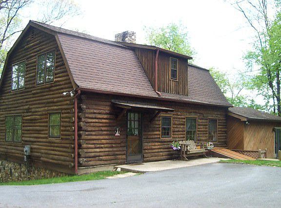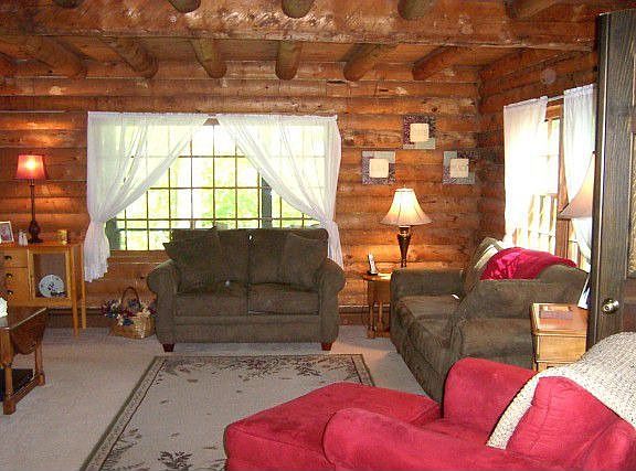 Beautiful handcrafted log home nestled on a private 1.34 acre lot. The huge 2 bay detached garage can easily accommodate 3-4 cars as well as large trucks. Perfect set-up for a small contractor or hobby shop. 24x32 storage area above garage.