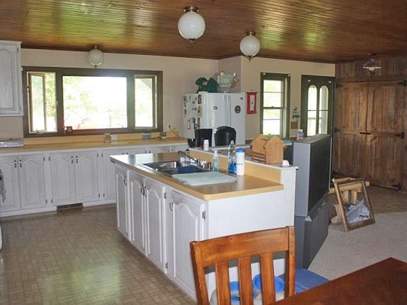 Looking for country living? This two story 3 bedroom home sets on 2.4 acres with nice country views all around. Very large open kitchen-dining area. Living room has barn board and knotty pine walls and ceilings. Three seasons porch and a screen porch for enjoying company or your country views. Two car detached garage and for other shed. One year home warranty included. Call today for your private showing.