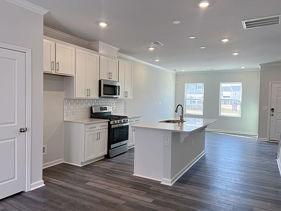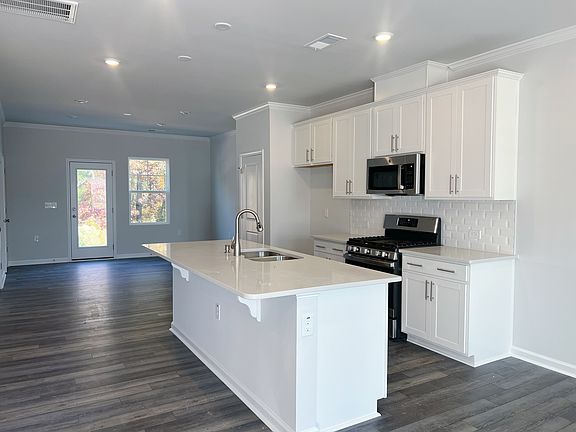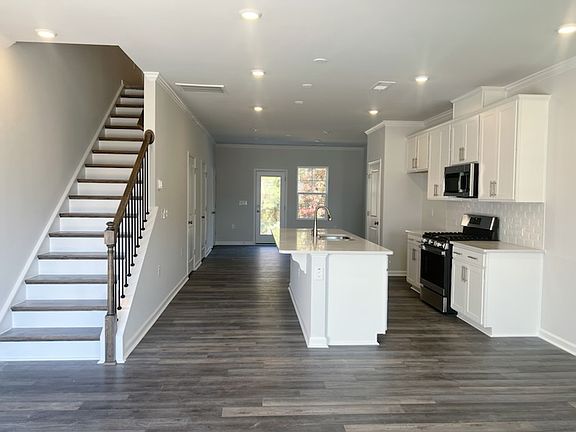 Charming newly constructed home with numerous upgrades welcome you! Open floor and hardwood through main, with a generously sized living area, a well-appointed gourmet kitchen, and a dining space that opens onto a private patio overlooking the lush tree-lined backdrop. The upgrade kitchen with a central island, pendant lighting, stainless steel appliances, a gas range, and a stylish tile backsplash. Ascend the wooden staircase to discover the 2 bedrooms, each featuring its own attached private ensuite. The primary bedroom includes a walk-in closet, a dual vanity, and a walk-in shower. The secondary bedroom offers a walk-in closet and a dedicated bathroom. Don't forget to check out various HOA amenities, including pickleball, tennis and volleyball courts, a playground, a dog park, a gym, and an indoor/outdoor pool. Close to shopping, dining, and entertainment options. Convenient access to major roads and highways for easy commuting, minutes to highway 40 and 440 and 15 minutes to downtown Raleigh.