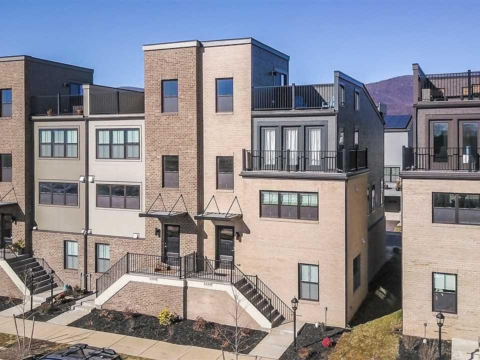 You will love this modern, end unit townhome with warm touches and a contemporary flare! Energy efficient construction with many green features plus premium upgrades and custom paint throughout! Main living level boasts a chef's kitchen with upgraded appliances, island, breakfast bar, granite counters, marble backsplash and more! The flow to the living and dining areas is perfect for casual living and gracious entertaining and also features stunning built-ins for storage and display. All bedrooms feature private baths with stunning, custom floor tiles. The private, rooftop deck with glorious mountain views is the perfect getaway to relax and unwind. Easy stroll to Old Trail shopping or to the golf course!