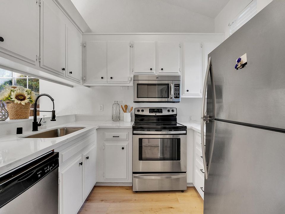 Welcome to this 2 bedroom 2 bath home with 2 car garage! Wood floor throughout. Bright kitchen remodelled with craftsmanship in a simple modern style, stainless steel appliances included. Light living room with a fireplace offers a cozy space to relax and enjoy family time. Master bedroom with two spacious closets and private bathroom. Enjoy the sunset on higher-level view in the backyard. Great location close to Clayton Valley Shopping Center and restaurants. Turn Key and enjoy! Tenant is responsible for all utilities.