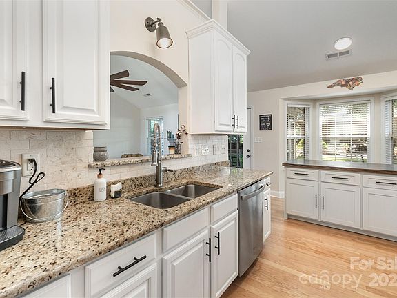This meticulously maintained home offers modern upgrades, including a new furnace, AC outdoor unit, redesigned ductwork for efficiency, and a mini-split unit added in 2023. The modern kitchen, with its gas range, is perfect for cooking enthusiasts. Outdoors, enjoy the screened-in back porch and patio with a pre-connected natural gas Weber grill. The property is equipped with Google Fiber hookup, Nest thermostat/doorbells, and a wired Google camera in the garage for added safety. Plus, benefit from the convenience of a modern WiFi-enabled garage door opener. The roof was replaced in 2021 and is under warranty. The landscaped yard and storage shed add to the property's appeal. Community amenities include a dog park, outdoor pool, picnic area, and playground. Conveniently located near I-485 and I-85 for easy access to Charlotte and an even shorter distance to Harrisburg for access to a wide variety of shopping and restaurants.