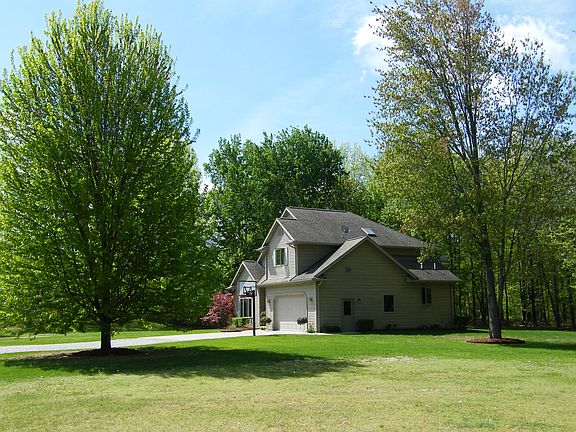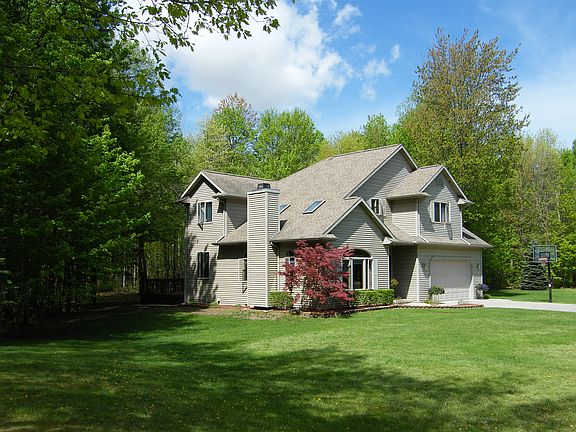 Custom built 3 bedroom home by Chad Sajdak in 2000 on a 3 acre wooded lot (mostly maple trees, unbelievable post card color in the fall, watch the deer come in 20 ft off the deck in your back yard) 3 big bedrooms with plenty of closet space (master bedroom has a walk-in closet) 2 1/2 bath, laundry room with plenty of cabinet space, computor/office room, Bose surround sound system wired throughout the home and garage, 2 car attached heated garage. Custom oak wood work throughout (oak stair case, solid oak 6 panel doors, oak kitchen, laundry and bathroom cabinets) Corian counter tops in the kitchen and all bathrooms. Custom under the cabinet lighting in the kitchen. Open floor plan, 9 ft ceilings to accompany beautiful ellipticle windows in the living room and dining room. Gas/wood fireplace, Anderson windows throughout, skylights in the living room and master bathroom (plenty of natural light) Beautiful landscaped yard with maple and spruce trees from Bay Landscaping. New large deck in 2013 for entertaining. City water all underground utilities. Quiet neighborhood with all newer homes (all on 3 acre lots so plenty of privacy)