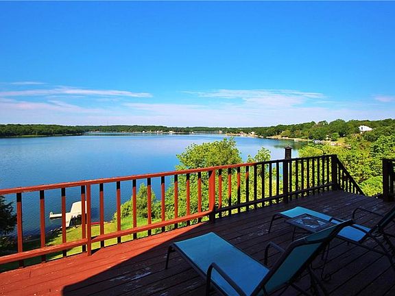 Spectacular Main Basin Views from Turnkey Lake Home! Views, Views, Views! Pack your swimsuit and move right in this turnkey waterfront home on the lake's coveted main basin. Even the boat is included! You will love easy, breezy summer days whether you prefer the open deck or the covered lower deck. The manicured lakeside area is also loaded with options to enjoy, including park-like lawn, sandy beach, bonfire area or floating by the dock. Bliss! The lake-themed interior will charm you, with light beachy colors and style. The vaulted great room ceiling features a wall of windows with breathtaking lake views that only the main basin location can offer. With three beds and two baths, you'll cherish summer sleepover nights for perfect stargazing from the open deck or down by the lake. Life is short, so don't wait to make your lakeside summer dreams come true! This move-in ready turnkey home is ready for YOU!