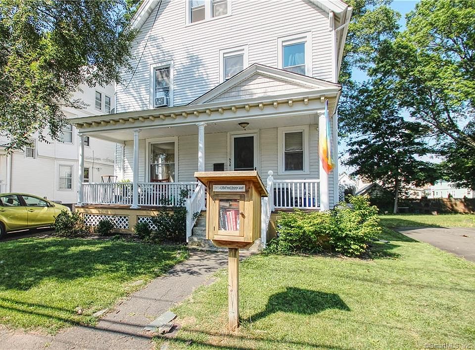 Own a piece of West Haven's history. Farmhouse style Colonial with 4 Beds, 1.5 baths, located in a desirable location in town is now available. Fully finished walk-up attic with potential for master suite or great room. Walk through french doors to a spacious and peaceful yard. Close to everything but just blocks from the beach. The home's turn of the century American architecture begins outside with the inviting covered front porch with dental molding detail. A classic foyer with solid hardwood floors and tall ceilings welcomes you inside. You will immediately note the classic charm in the L shaped staircase held with wooden spindles and newel posts. Or maybe the bright, turret style dining room with tall windows. Yet the modern upgrades also shine. The many years of work and care taken to keep the home up to date over time is evident throughout. Both in function and design. Newer gas furnace, new Anderson custom door, new windows, ceiling fans, and granite in the kitchen are just a few. Ready for its newest caretakers, it will continue to stand the test of time.