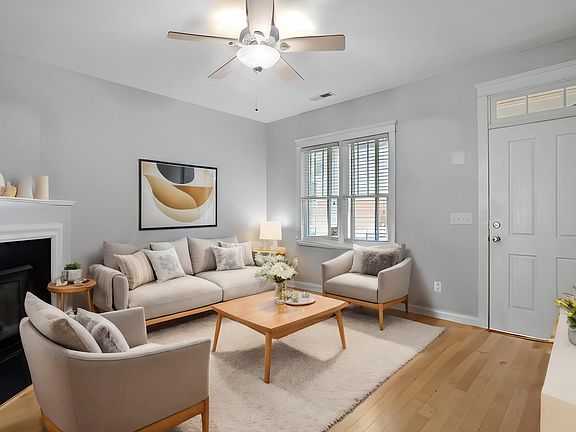 Talk about curb appeal!! This adorable detatched bungalow in desirable Cary Park neighborhood features curb appeal galore with its craftsman style columns and a bright red front door! Detached 2 car garage adds to the exterior charm by being set back off the street behind the home. Inside you'll find convenient first floor living with 2 bedrooms and 1 full bath on main level. Light, neutral hardwood floors in the main living areas and plush carpet in all the bedrooms. Kitchen includes flat panel maple cabinets with crown molding and tile backsplash. Upstairs you'll find a huge owner's suite with WIC and a private bath with double vanity. The owner's retreat also includes a large sitting area. 2 large floored storage areas on the 2nd floor are great for storing holiday and other seasonal items. Enjoy the community pool, which is right around the corner, for a small fee. All other Cary Park amenities are included in the low HOA dues.