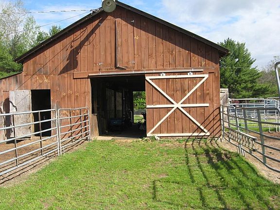 Horse Lovers Retreat!! Beautiful Ranch style home with fantastic 5 stall horse barn on 5+ acres of riding areas in the south end of Town. This 2 bedroom, vinyl sided Ranch is in a picturesque setting. Large kitchen with a great flow into the living/dining area, open floor plan and beautiful pine board flooring throughout. Wood stove for those chilly days of working on the farm. Huge,lighted riding arena along with more open acreage. Barn with cement floor has five horse stalls, three dog kennels and storage for over 600 bales of hay. Barn also has separate work areas for your home projects.