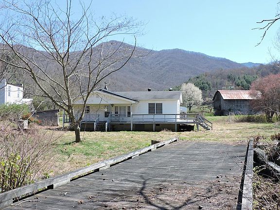 Farm House in the Mountains! This adorable home sits on 1.76 acres of flat and useable land in the beautiful mountains of North Carolina. Land is very usable for gardening, farming, or having livestock/ animals. This property is unrestricted and close to town, but far enough to make you feel out in the country! This home is only minutes to downtown Burnsville, and about 45 minutes to Asheville!! This property sits on a Bold Creek that runs year round! Open the windows and hear the babbling creek or sit on your large deck and enjoy the mountain lifestyle! Property has two outbuildings and a great outdoor area! This home will check all your boxes!! A must see! Priced to sell! Won't last long.