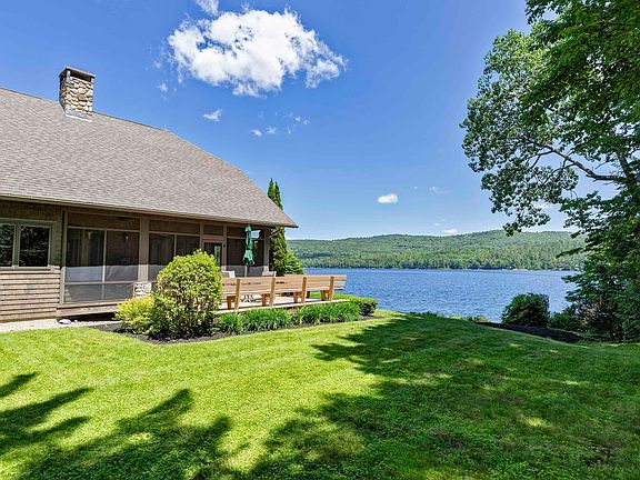 Year round home with 202' of PRIVATE WATERFRONT on Pleasant Lake - one of the cleanest lakes in NH. The home sits on a 1.55 acre double lot with wide lake views, a waterfront deck and a new dock for your boat. Single-level living includes a spacious eat-in kitchen, living room with stone fireplace, screened-in porch and large deck with wrap around seating for all of your outdoor gatherings. The main floor also offers a family room with a second fireplace, 3 bedrooms, 2 bathrooms and a laundry room. Hardwood floors and wood finishes create a warm and inviting feel. Rent out the large second level apartment or use it as a primary bedroom suite or guest suite with living room/bedroom, kitchen and large full bath. The unfinished basement has plenty of storage space and a 1 car oversized garage. There is also an additional detached 2-story garage/barn. Nearby activities include golf, hiking and skiing. Located within 5 minutes of New London town center for shops, restaurants and entertainment. Easy access to I-89, 30 minutes to Hanover and Concord, and just 90 minutes from Boston.