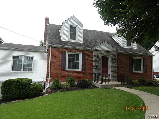 This will be a Short Sale- Cape Cod Brick and stone exterior, 3 car garage in East Old Ferguson. Working with bank for insurance claim for water damage. Three bedrooms, great covered deck that backs to common ground, large lot. Convenient to many restaurants, Farmers Market every Saturday, bike friendly city, ball park 20 min metro ride, major highways 10 minutes away. Walk to the Corner coffee shop, Micro Brewery ,Wine Bar Cork, Food Trucks once a month that visit, free concerts 501 N Florissant, so much to do in the City Walk. Diningroom with two corner built ins, Gas fireplace in living room, and den, large kitchen that walks out to huge covered deck, beautiful private yard. Updated bath main level ceramic flooring, pedestal sink. Three bedrooms up with Full bath, Walk out finished lower level. Furnace 8 years. Three car garage. Alarm system. Kids can walk to St Teresa elementary. Contingent upon lien holders approval seller has submitted all papers to lender.