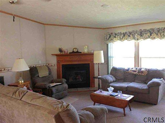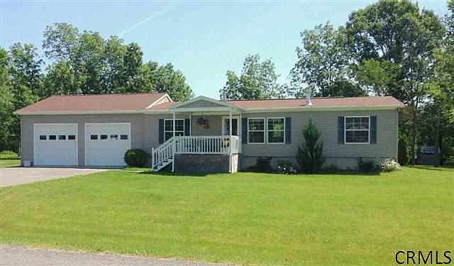 Loads of improvements made to this double wide ranch on 1/2 acre lot in quiet community. Newly added 26x26 garage, paved drive, landscaped yard & shed! interior well kept & turn key! Living room w fireplace, nice kitchen open to dining area, master w private bath. Have your morning coffee & watch the deer & turkeys in your back yard!! Nothing to do but move in & enjoy!