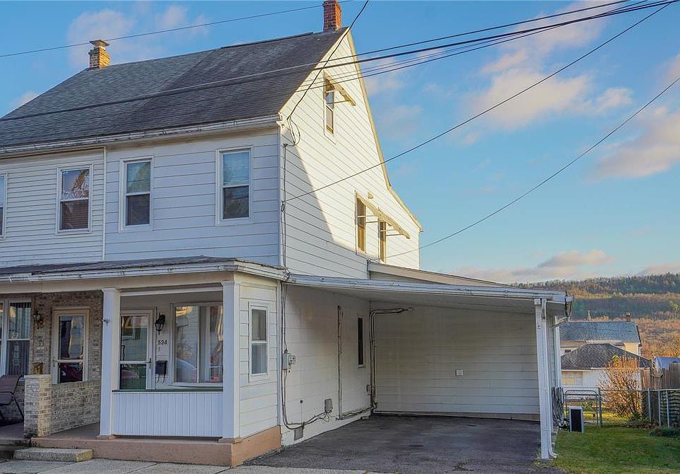 Situated near the edge of town, this charming twin offers surprising and welcome updates! A covered front porch opens into a generous open-concept Living-Dining space, a mini-split offering year-round comfort! Beyond, the updated kitchen offers room to eat in and shines with recent updates including granite counters and a subway tile backsplash! A mud room offers storage closet and access to the home’s deck and yard. Completing the main level is a 300sf addition serving as family room with ample windows, sliding glass doors to the deck and skylights above, a beautiful room to gather with a second mini-split adding comfort to this incredible space! Upstairs, three bedrooms are served by an updated full bath with large stall shower. The attic offers excellent space for storage. Throughout the home you will find brand new flooring in carpeting and vinyl plank. The rear deck is comprised of low-maintenance materials from its composite decking to the vinyl rails with lighted caps situated to capture gorgeous views of southern hills! The deck also overlooks the fully fenced, flat back yard! Parking options come in carport to the front of the home and a detached one-car garage to the rear of the property. Situated on two parcels at the northern edge of town, this home offers the best of both worlds with a lovely setting a short distance from Route 309 and Tamaqua’s every growing downtown! Bonus: Tamaqua School District graduates qualify for the two-year LCCC Scholarship Program!