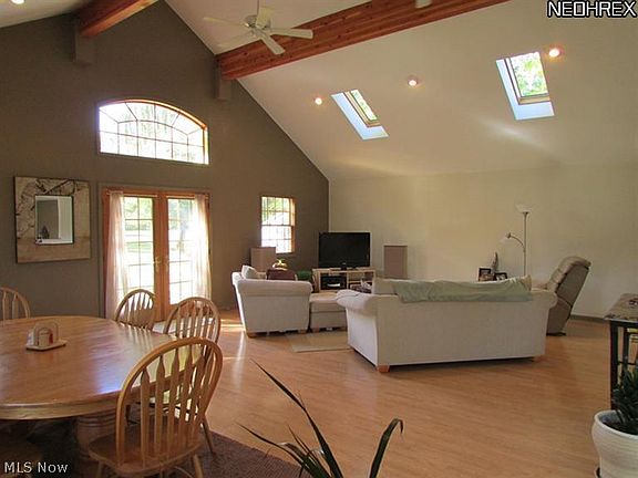 Truly Unique 3 Bedroom 2 Bath Raised Ranch, (Not a Drive By) Must See Inside this spacious home on almost 1/2 Acre. Private Lot, Awesome Vaulted 28 X 20 Great Room/Dining Room combination w/skylights & slider to patio and treed yard. Updated kitchen w/breakfast bar, ceramic floor, 3 nice size bedrooms. Master BD w/ walk in closet and private bath, all bedrooms have hardwood floors, & ceiling fans. Lower level includes laundry room, storage room, workshop area, and 2 car garage. Furnace/AC and windows approx. 14 years, Hot water approx. 5 years. A one of a kind one that is larger than it appears!