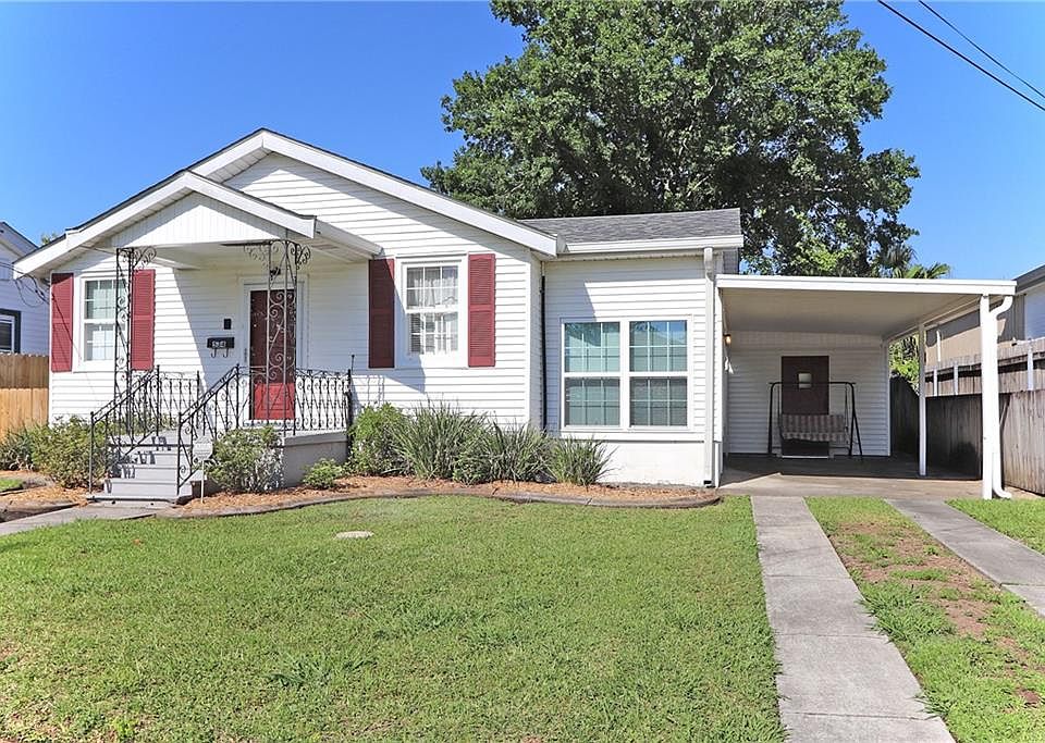 Charming Old Jeff Cottage. This home features a large Den (or primary bedroom) across the back of the home. Updated atrium doors open to the deck & nice yard. Inside laundry room off the kitchen. Dining room with wood floors. Covered carport with storage room. New roof! Central A/C & Heat. X flood zone - current flood premium only $500/yr. No carpet. Great location - close to Ochsner & easy access to Nola.
