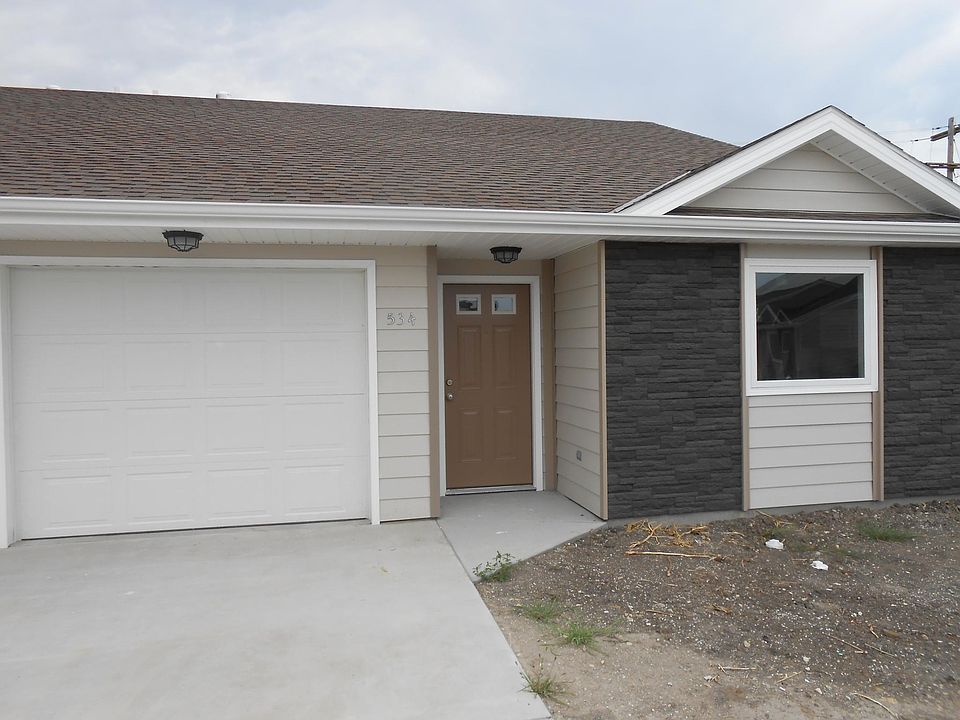 This duplex is located on a circle drive-built in 2012. Vaulted ceilings in the open floor plan for the kitchen-living room. Come take a look! Winter Special! Sign a lease between now and the end of March for the rate of $915 per month! Tenant responsible for utilities: Gas-Electric-Water-Trash. Lawn care is provided. No pets.