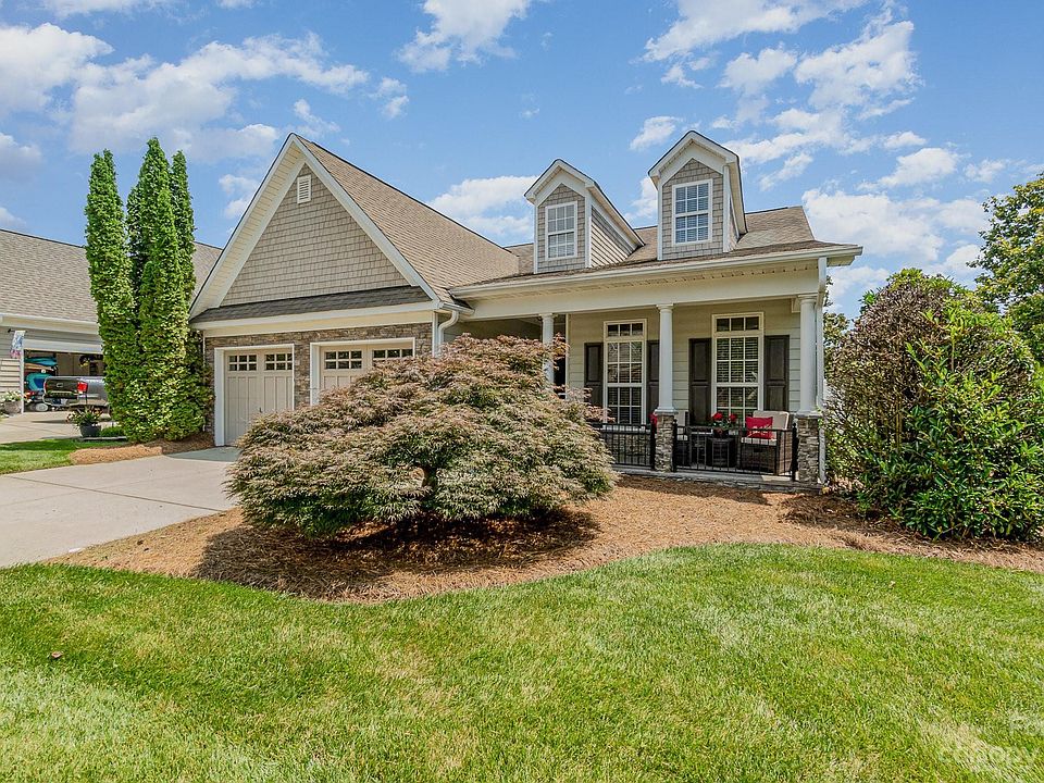 Lovely Laurel Park awaits! From the wrought-iron railing on the rocking chair front porch to the magnolia-lined backyard, Southern charm abounds in this single-owner home. The wide foyer welcomes you to the lovely formal dining room. The bright & cozy kitchen boasts a bay window breakfast area & peninsula with excellent views of the spacious family room with gas logs flanked by a mantle & custom bookshelves. The split bedroom plan offers privacy. Retreat to the primary bedroom with ample storage, sitting area, & hardwoods. At construction, the home was designed for adaptive living-gentlemen's height cabinetry & level-entry shower along w/bars for increased mobility. Outside, the pergola-covered patio is ideal for evening barbecues & relaxing with friends. Since lawn service is included, you'll have time to enjoy the pocket park in the adjacent lot or the neighborhood amenities. All of this, close to Afton area restaurants, shopping, desirable Cabarrus schools, & easy access to 85.