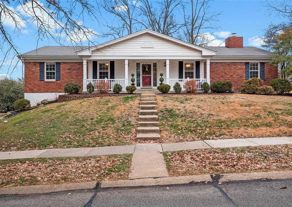 Rare opportunity to own FOUR bedroom ranch home in excellent Des Peres location. Welcome guests from the charming covered porch into the spacious foyer. Hardwood flooring flows throughout the main level living areas with crown molding in living & dining rooms and the eat-in kitchen. Formal dining room features classic wainscoting. Kitchen has been updated with granite counters, tile backsplash and stainless steel appliances. The family room features a unique box-beamed ceiling, cozy gas fireplace and door to deck. All bedrooms are spacious. Master bedroom has two closets and ensuite bath. Choose from main floor or lower level laundry. Fantastic finished lower level offers large rec room with a wet bar, a game area, wine closet, a full bath, corner woodburning fireplace, spacious laundry and still plenty of room for storage. LL also offers plenty of windows to let in natural light. Large workshop off of garage that could be used for storage as well. Corner lot backs to common ground.