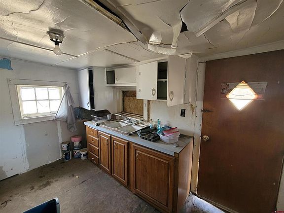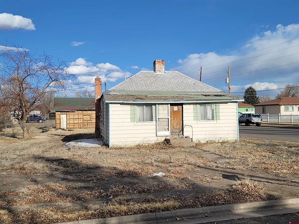 Home is a fixer upper. Sold as is. No foundation. Taps for gas/sewer are on property. 1 detached car garage. If you are looking for vacant land, you can remove home and have a beautiful, easy access corner lot located in Monte Vista, Co.