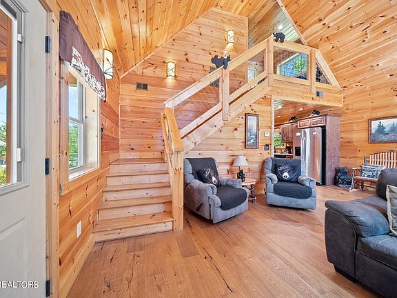 UNBELIEVABLE BUY! 2BR/2BA SHORT TERM RENTAL CABIN WITH MODERN TOUCHES IN GATLINBURG, TN WITH PROVEN RENTAL HISTORY LAST THREE YEARS! NO STEEP ROADS TO ACCESS AND A NEARLY LEVEL LOT WITH ROOM FOR AN OUTDOOR FIREPIT AREA! This ''like new'' cabin built in 2019 is in pristine condition and has been maintained well. Interior features includes an open and airy floorplan with soaring vaulted ceilings in the living room with river stone accented gas fireplace, custom bark accents throughout, tongue and groove walls and ceilings, and hardwood floors throughout. Fully equipped kitchen with solid wood cabinets, granite countertops, and stainless appliances. Two Master Suites with en suite bathrooms on each level! Loft with multi-arcade game area for entertaining. Bedrooms are spacious with granite countertops in the bathrooms. Covered back deck with bubbling hot tub for relaxing and outdoor seating to enjoy the wooded setting. Plenty of parking with its own private driveway, nicely landscaped, and easy access only minutes to downtown Gatlinburg attractions, shopping, and restaurants. Also, only minutes to the Great Smoky Mountains National Park entrance for hiking, sightseeing and more! Only a short drive to Pigeon Forge and Dollywood. This one is a must see! *CHECK OUT THE WALK-THROUGH VIDEO***