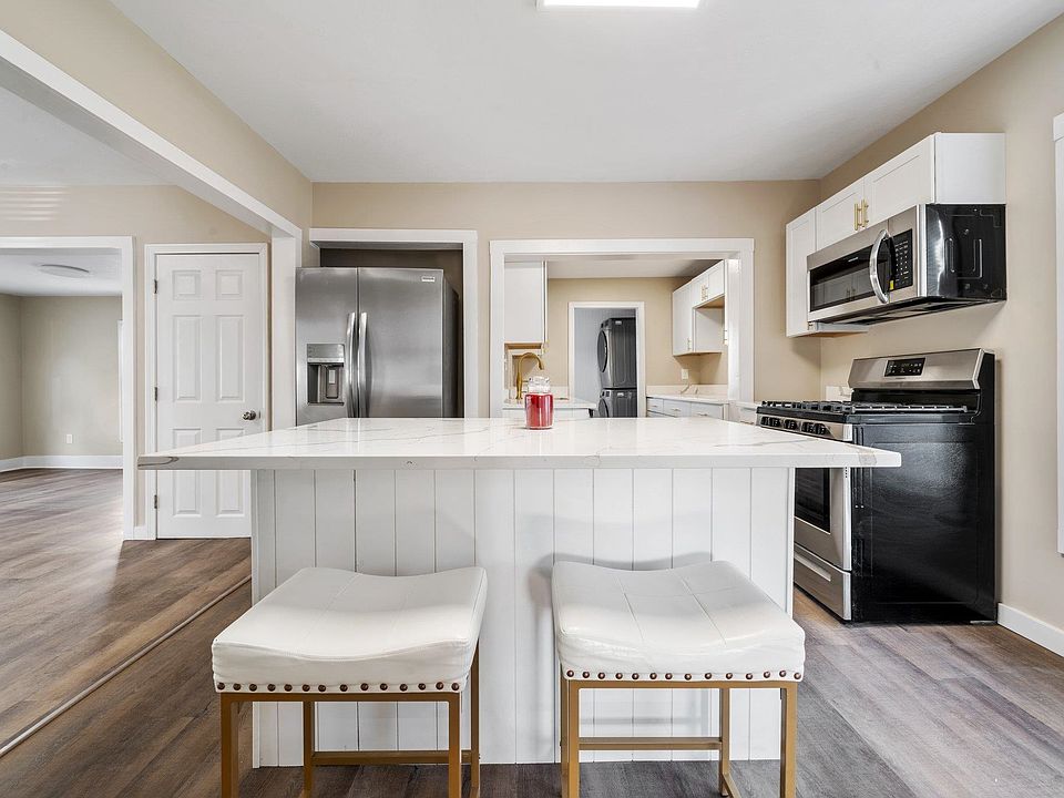 Back on Market!!! Fully renovated house for under 400k. New electrical, plumbing, kitchen cabinets, stainless steel appliances, 4 zone mini split system, hot water tank, bathrooms, as well as new lvt flooring throughout the house. White quartz countertops w/ island/breakfast bar with gold accents. Plenty of off street parking as well as large, level partially fenced in yard. Schedule your showing today!!!