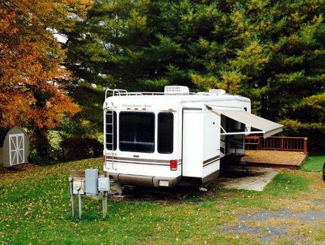 If you have been thinking about coming to the mountains and looking for a way to get here--- this is it-- come camp on the weekends and enjoy the mountains before deciding if you want to buy a permanent home !! This camper is just like living at home, it has 3 slide-outs, leather furniture, king size bed, fireplace, and stack washer and dryer, solid surface countertops and more. Sold furnished with 3 TVs This place is a home away from home already !!! Enjoy sitting on the large deck outside the camper on those cool mountain evenings. Storage building and upright gas tank comes with the property, camper has 3 bedroom septic in place and shared well. 2002 Mountain Aire sits on approx. .699 acre. Pretty views and nice hardwoods around camper.