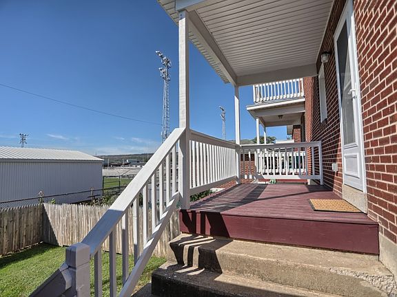 FRIDAY NIGHT LIGHTS onto Mitchell Field for Mifflin County football action from your balcony! 3 bedroom brick, with many upgrades. First floor laundry, 200 amp upgraded electric, ceiling fans in every room, fenced yard, Replacement windows and exterior storm doors on first floor Kitchen is original including porcelain farm sink. Front and rear porches, walk-out basement to fenced yard and a small 1 car detached garage