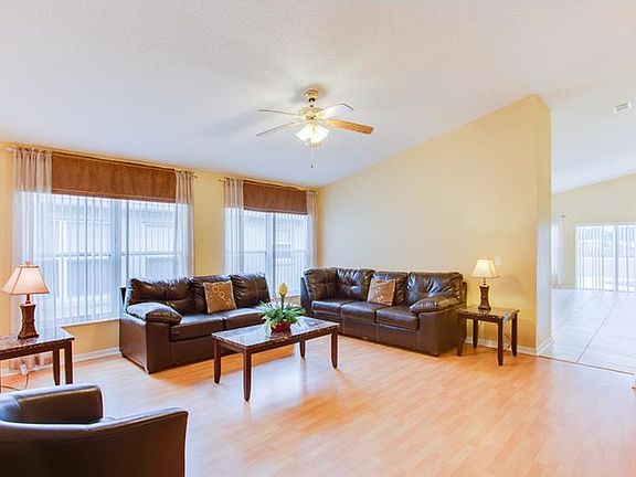 Welcome home to this beautiful FULLY FURNISHED & decorated 4 bedroom 3 bath POOL home just a short drive from Walt Disney World & major attractions zoned for short-term rental usage. Featuring stunning cathedral ceilings, spacious master on-suite, stainless steel appliances, Brand new A/C system just installed. This property is located in the well maintained community of Hampton Estates. The community has plush landscaping, beautiful tree lined streets with a community park, sand volleyball, tennis court and a large community pool. Come make this fantastic move-in-ready house YOUR home!