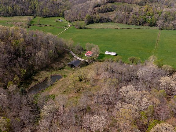 Discover this picturesque 99.5-acre (+/-) farm featuring a beautiful, classic farmhouse with a full unfinished basement, ready for your personal touch. The property boasts several acres of level land ideal for hay production—its current use—or easily convert it into lush pastureland for livestock. Behind the home, you'll find a versatile hoop barn, while a spacious pole barn sits conveniently across the road, complemented by a serene pond positioned just above. Utilities, including high-speed fiber optic internet, are already available at the house, making this property perfect for expanding an existing farming operation or launching your new agricultural venture. Don't miss the opportunity to explore the endless potential of this charming Kentucky farm! Also this home is equipped with a drinking water filter system and a water softener.