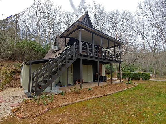 Sit on the deck of this rustic 2 bedroom, 1.5 bath cozy chalet on 2.97 acres and enjoy the sight and sounds from the creek across the road. If you're looking for the cabin in the woods feel with tongue and groove pine paneling and tongue and groove ceilings, make sure you look at this one. This home sits on an above ground full basement with a workshop, half bath, laundry room, possibly a family room and a couple other multi-use rooms. The upper floor has the kitchen, dining area, living room, bedroom and full bath with the large loft bedroom above.