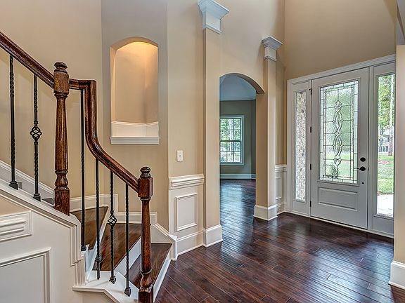 Contact me at 704-615-7315 or visit www.carolinahomesconnection.com for more information or to schedule an appointment. True dual owner's suites in this open floorplan.42"Cherry Java cabinets,granite kitchen/baths,tumbled stone backsplash,cabinetry hood,wall-oven,SST app,butler's pantry w/wine rack,family rm w/stone fireplace &coffered ceiling.Arches/heavy molding thru-out, hardwoods on main.2nd owner's upstairs has sitting rm, oversize his&her walk-in closets.Bonus rm w/french drs. Energy efficient features inc.tankless water heater, radiant roof barrier.1+acre wooded lot less than 10 min to Buster Boyd Bridge.