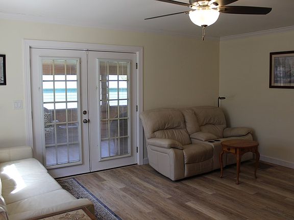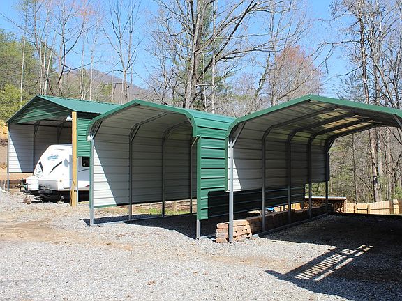 CHARMING HOME IN THE WOODS. Don't let the charm of this unrestricted 1+ acre property distract from the furnished 2BR/2BA home's real-world functionality. There's a Generac generator, a garage, three carports (one wide and high enough to house a large motor home or boat), an outbuilding for storage, and a recently-erected 6' high wooden fence that surrounds the property. On the main level you'll find a full kitchen and dining area, a comfortable living room, two bedrooms and baths, and a relaxing sunroom with ceiling-mounted, drop-down flat screen TV. On the terrace level, construction of a kitchenette and additional living space are already 75% complete. Come enjoy this beautiful home in the woods!
