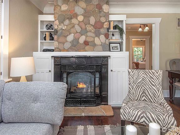 Classic 1917 built Phinney Ridge Cottage loaded with character and old world charm. Situated on a sunny south facing lot with a lush mature front landscape that is ready for summer entertaining. This quiet 2 bedroom 1 bath home with vintage wood floors and private back sun room will not disappoint. Super cute kitchen with Marble Counter tops, stainless steel appliances, farmhouse sink and a nook that looks over the front garden. Intimate front living room with custom gas Fireplace surrounded with built-ins. Light filled fully fenced private back yard with alley access and a gardening shed.  Walk to all things Green Lake and Phinney Ridge, tons of shopping and dining options just a few blocks away. Easy access to Downtown Seattle and I-5.