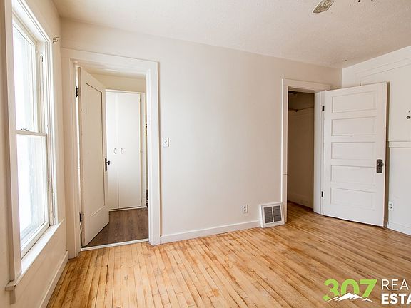 Great Investment property or starter home located CLOSE to downtown Powell. Original hardwood floors, 3 bedroom & 2 bath with lots of living space for this age of home. Features a unique covered front porch, newer roof, and 2 potential living rooms. Basement is unfinished and could be utilized for additional storage!