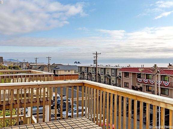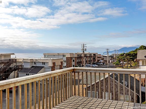 1st row balcony! Lofty sandcastle just off the beach in Rockaway. Close-in view of the fireworks. Views to the water and up the coast to Neahkahnie Mountain. Well considered floor plan for beach lifestyle, full bathroom off of the garage. 2 master suites on middle level. Lots of light and views east and west on the 3rd living level. Plumbed for central vac. Bonus room on lower level could be turned into 3rd bedroom with egress added.
