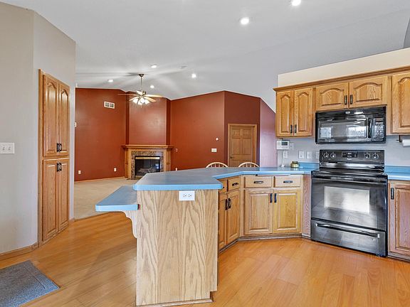 This one level townhome has so much to offer! The furnace was new in 2021, shingles are newer. The entry welcomes you into the spacious open floor plan with a large eat in kitchen with many cabinets, pantry some newer appliances, a breakfast bar and bay window in the dinette area. Vaulted ceilings show off the living room with a fireplace and dining room. There is a sunroom with knotty pine walls, den/craft room off of the sunroom. The dining room has a patio door with bay window which leads to the patio where you can relax and get the afternoon sun! The master bedroom has the master bath and walk in closet. All six panel doors. The heated garage is just off the laundry room and has a pull down attic storage access. The yard is large with a garden area and extra storage that is 18x12. Come enjoy living in the townhome where your snow removal and lawn care is done for you! The stove in garage will be included and china hutch in the DR is included.