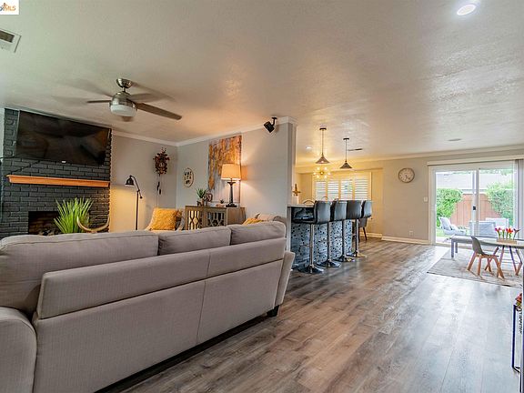 LOOK NO FURTHER!! This beautiful 3 bed, 2 bath with huge utility room (can be used for game room, office, etc.) has been completely updated and is located in the heart of Brentwood. Newer luxury vinyl plank flows throughout all 1,714 sqft, kitchen features quartz countertops, stainless steel appliances (dishwasher is brand new), and gold brushed cabinet finishes. Both bathrooms have been updated with newer vanities and brand new lighting fixtures. Utilize the oversized room, just off the kitchen, as your office space, game room, or can be converted into a 4th bedroom. Step outside in the backyard to your oasis! An entertainers delight! The backyard features a newer vinyl overhang, built in BBQ, putting green, two pergola structures, pool and spa combo, with a gorgeous mature tree at the center. Come and see, don't miss out on this one!