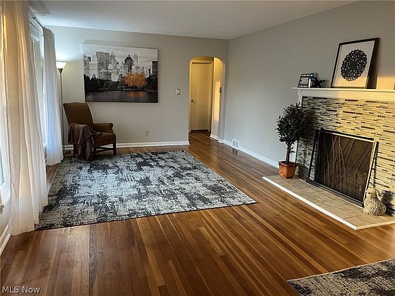 Visit this beautiful 3 bedroom Ranch home located in West Akron with a private treed fenced backyard made for outdoor living. You will be greeted by a large driveway, and two car garage. Walk into the foyer and be welcomed by a cozy living room with sunny picture window enhancing the hard wood floors and wood burning fireplace with glass tile surround. Dining room has glass front built-in cabinet, hardwood floors, ceiling fan and chair rail. Off the dining room you’ll find a spacious kitchen with built-in table top, wine racks, granite counters, soft close drawers and cabinets and under counter lighting. Leaving the kitchen, encounter a four season room with built in bookshelves, large windows with a side door leading to the backyard. You will also find three good sized bedrooms with hardwood floors, all fleshly painted. One of the bedrooms provides convenient first floor laundry in addition to the basement laundry. The full bath has new vanity mirror and light above the double vanity with cultured marble top, tile floor, linen cabinets and tub/shower combination. Downstairs you will find a full bath with shower enclosure, second laundry area, abundant storage, and a large recreation room with paneling, stone fireplace and carpet. Pool table stays. Outside is a deck overlooking the private back yard and a shed. Conveniently located to near by parks and shopping. Make new memories in this ready to move in home.
